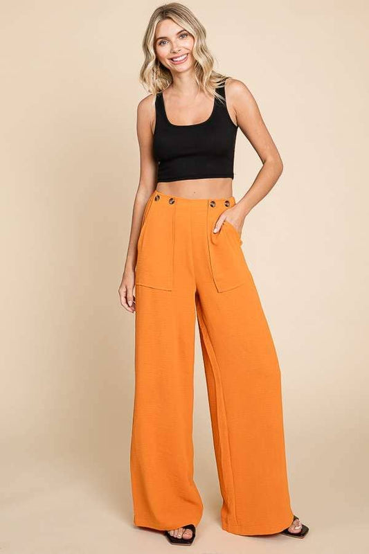 Plus CHAMBRAY PAPERBAG WAIST WIDE LEG PANTS WITH PO