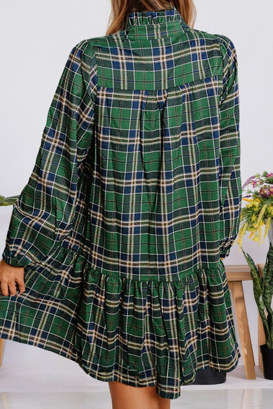 Christmas Plaid Print Notched Neck Shift Mini Dress (S-4X)