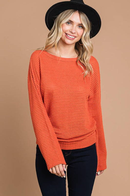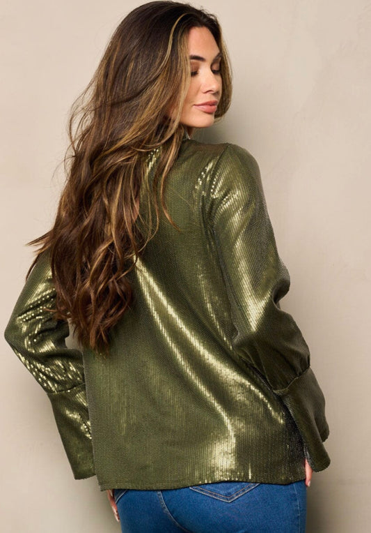 CHT1824L-Surplice Back Detail Bell Sleeve Top